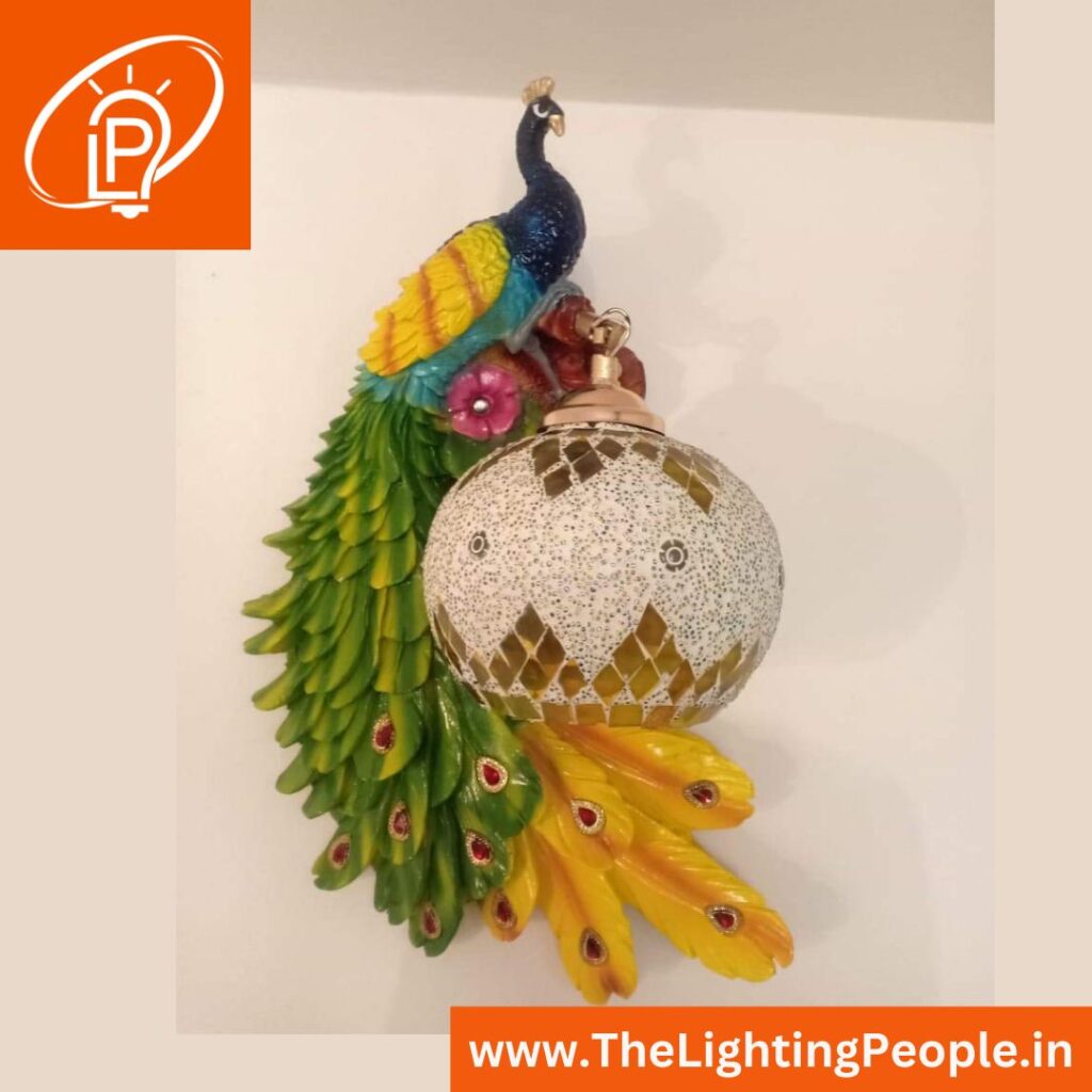 PEACOCK FEATHER WALL LIGHT MULTI COLOUR Product NamePEACOCKĀ WALL LIGHT MULTI COLOURNo.of Wall LightOne pcMaterialRESIN, WOODLight TypeE27 LED BULBDimensionsH17.7 inches, W10.62 inchesBody colourMIX COLOURMRP7,544/- RsDiscounted Price6,035/- Rs (1 pc)