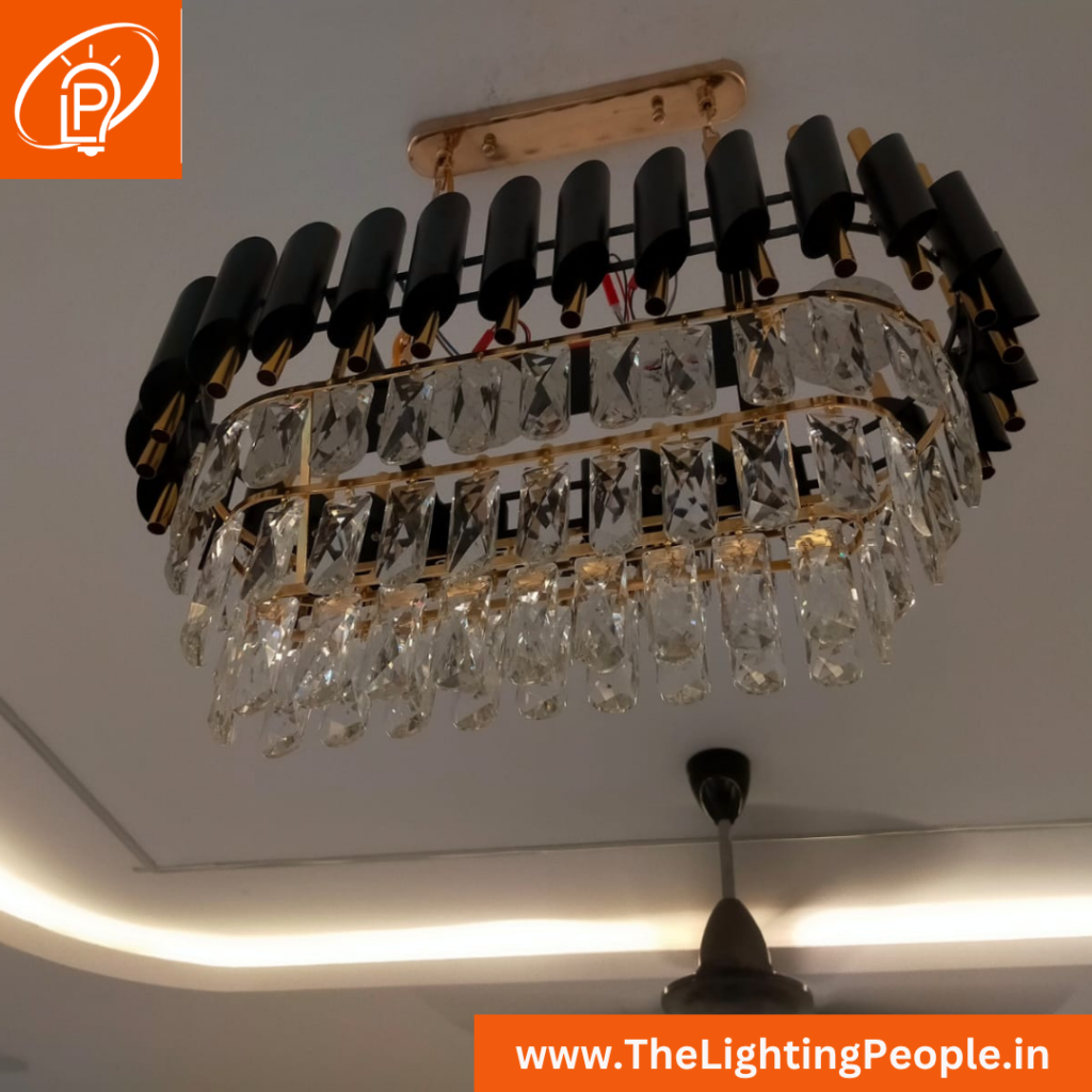 Crystal Hanging Jhumar Light Golden Rectangle Light