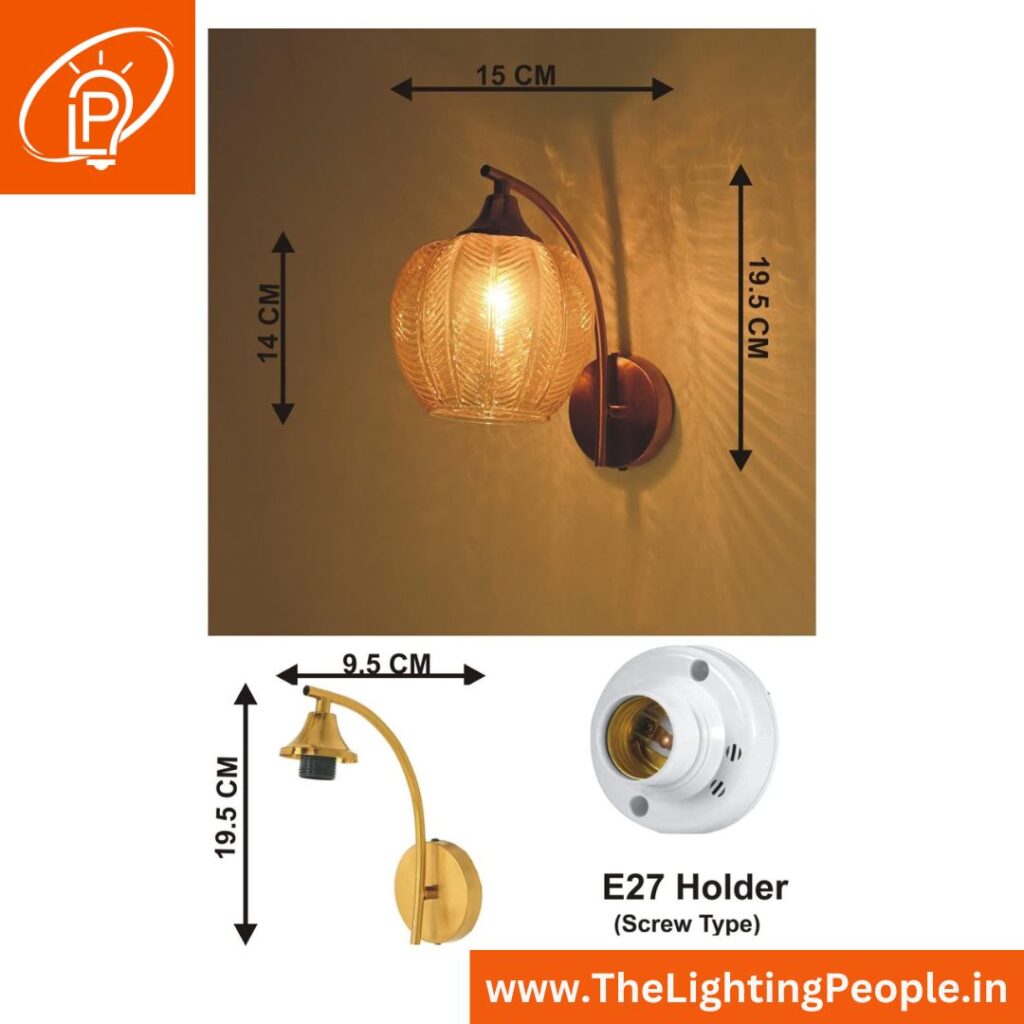 Classic Gold Glass Wall Light Product Name Classic Gold Glass Wall Light Item Code No.of Wall Light One pc Material Glass, Metal Light Type LED Dimensions 15L x 15W x 29.5H Body colour wall light Golden MRP 1770 Rs Discounted Price 1150 Rs (1 pc)