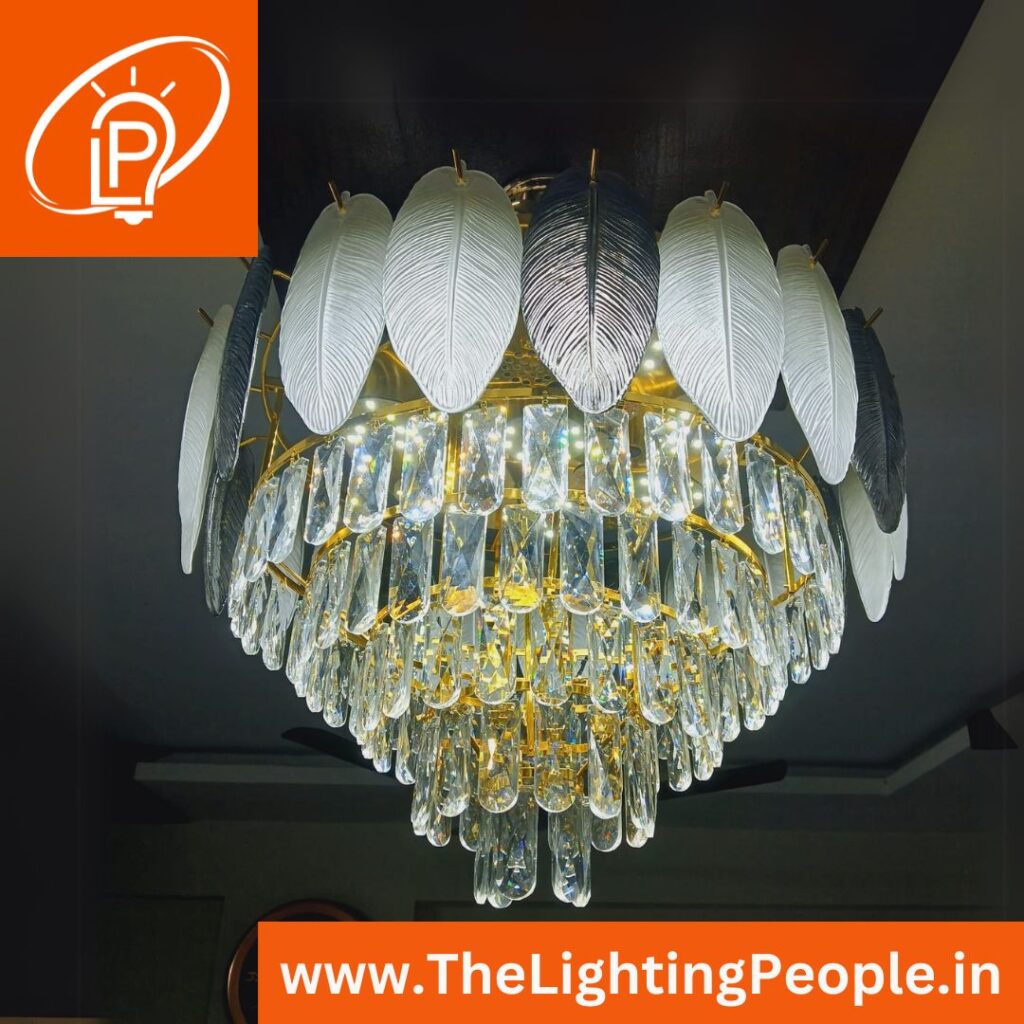 ROUND WHITE CRYSTAL HANGING ZOOMER Product NameRound White Crystal Hanging JhumarNo.of Hangings One pcMaterialGlass, CrystalLight TypeE-27 HolderDimensions600MMHanging Height1 MeterMRP10,917 RsDiscounted Price8734/- Rs (1 pc)