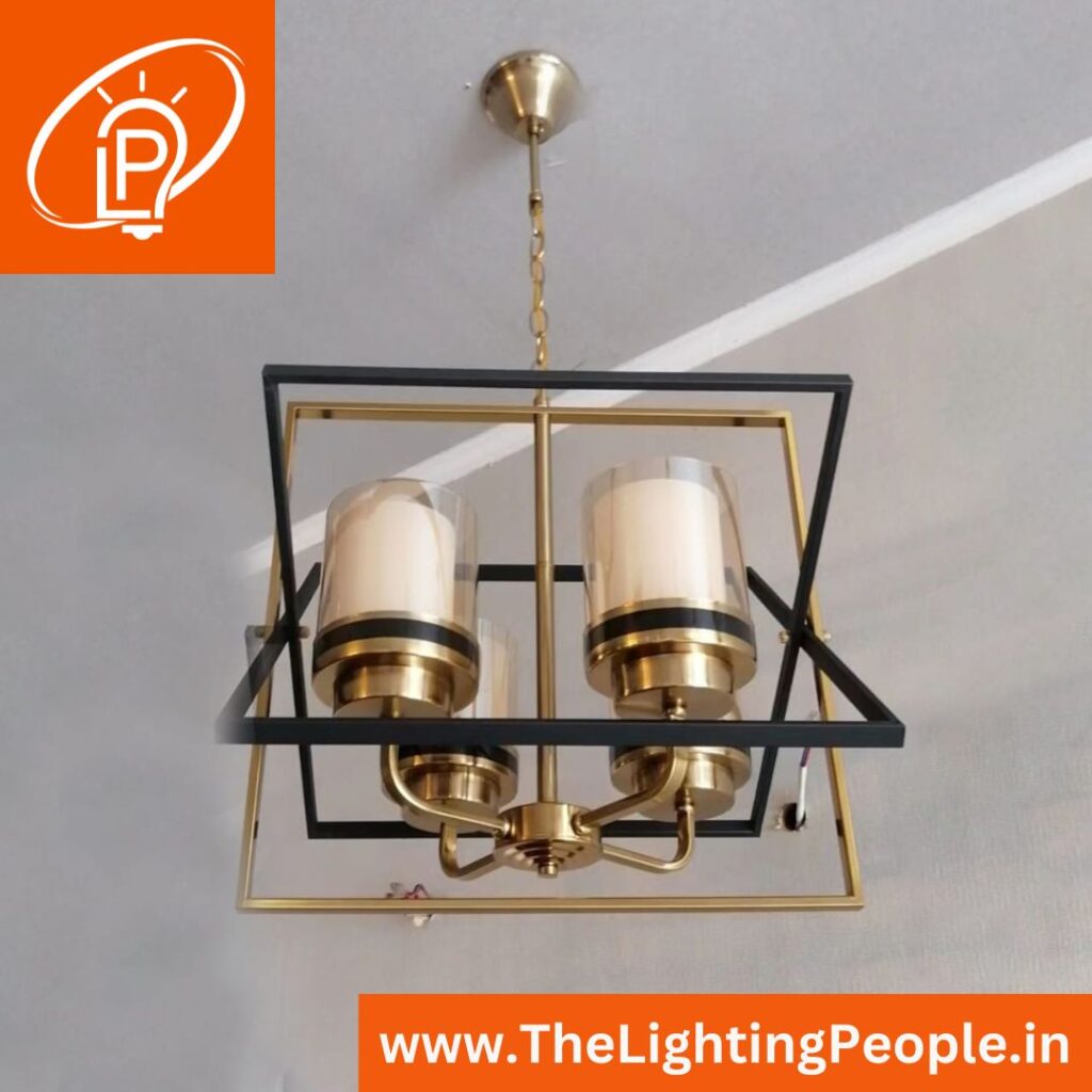 Hanging Jhumar Light Golden Glass & Metal Body Black