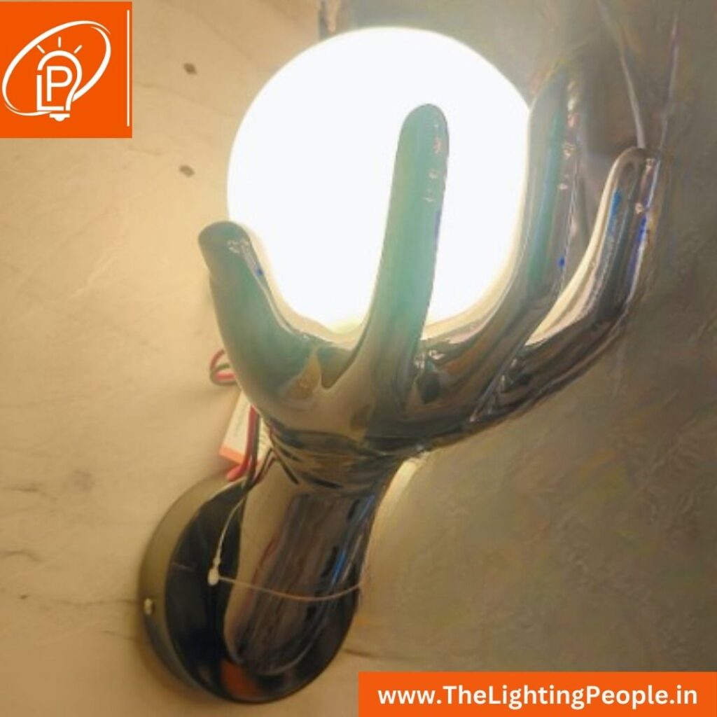 HAND WITH WHITE BALL WALL LIGHT Product NameHAND WITH WHITH BALL WALL LIGHTNo.of Hangings One pcMaterialIron Metal SheetLight TypeE-27 HolderDimensions Hanging Height1 MeterMRP5000 RsDiscounted Price4000/- Rs (1 pc)