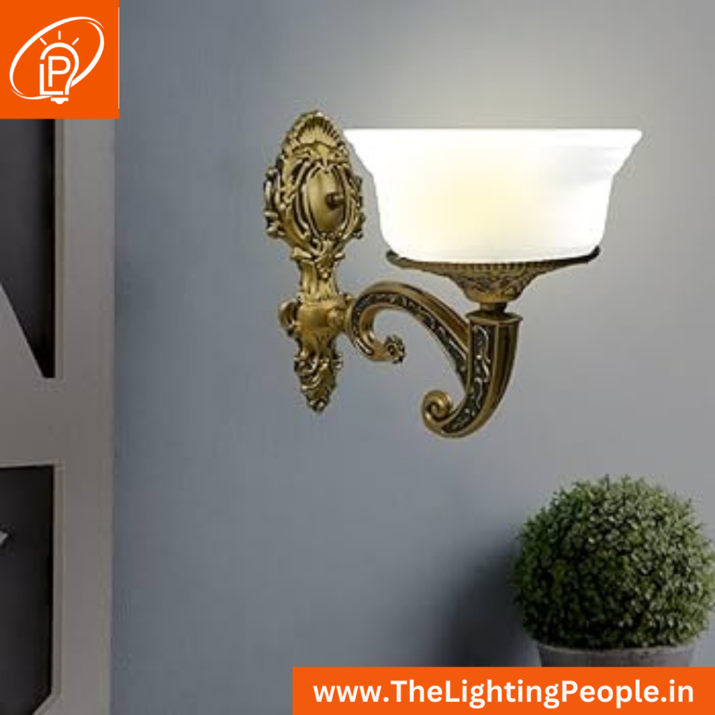 Milkywhite Glass Golden metal antique wall light